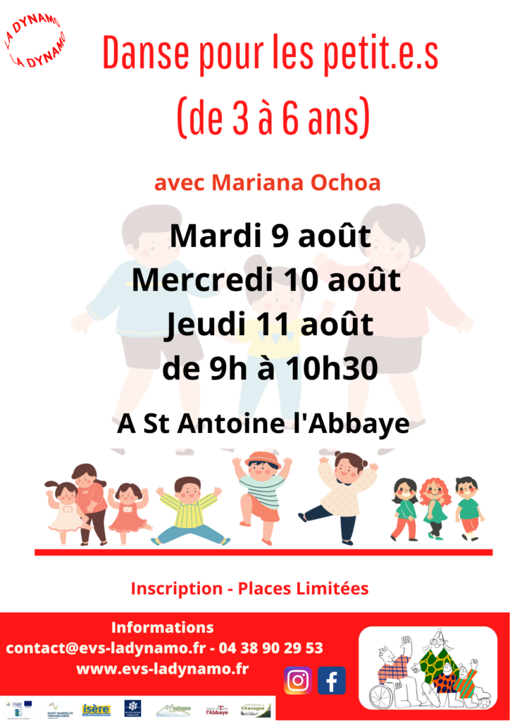 Danse et éveil musical pour les enfants entre 3 et 6 ans ? C’est avec Mariana à la salle de la zone technique de St Antoine l’Abbaye.